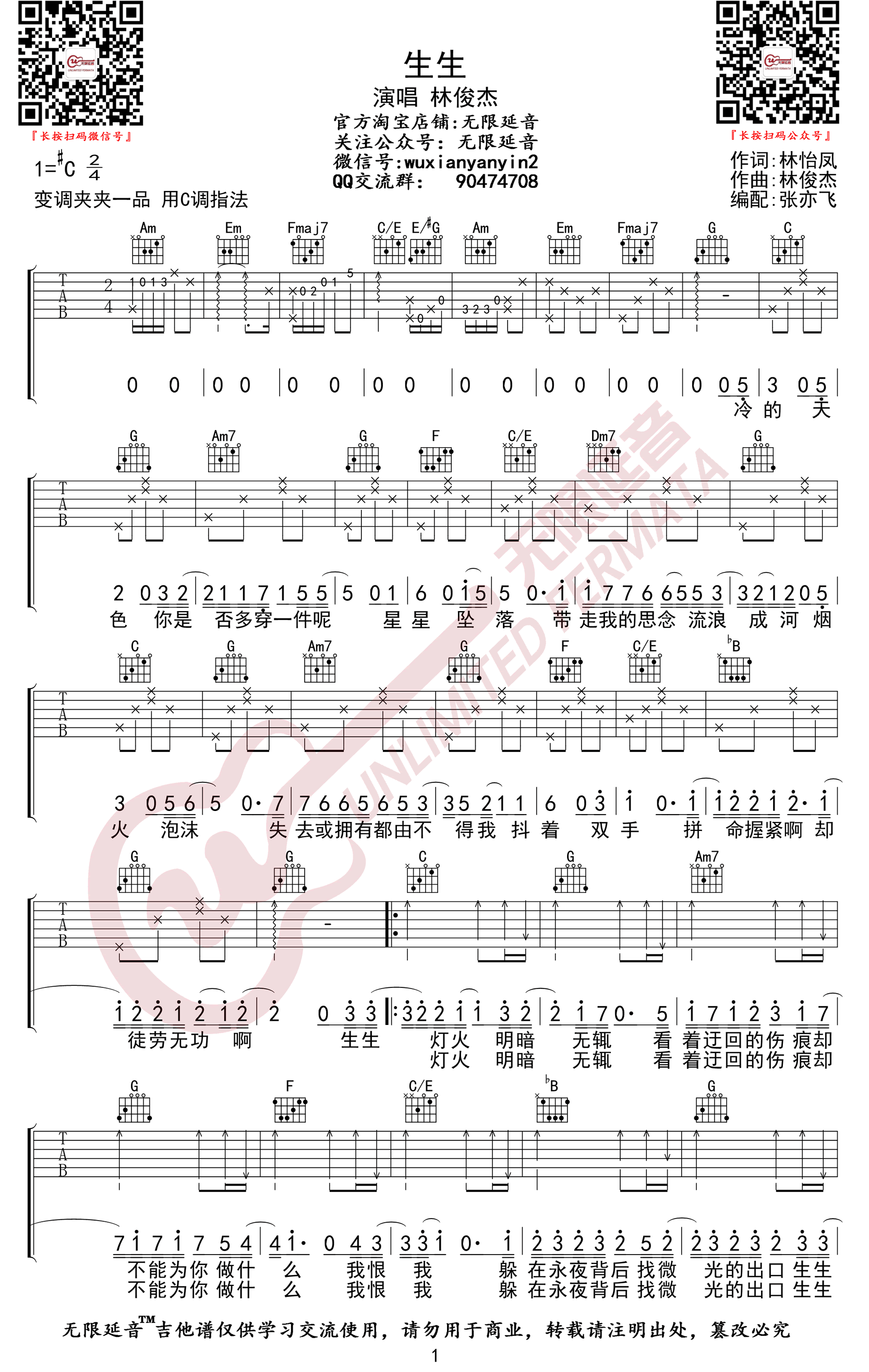 吉他林俊杰《生生》吉他谱_C调弹唱谱