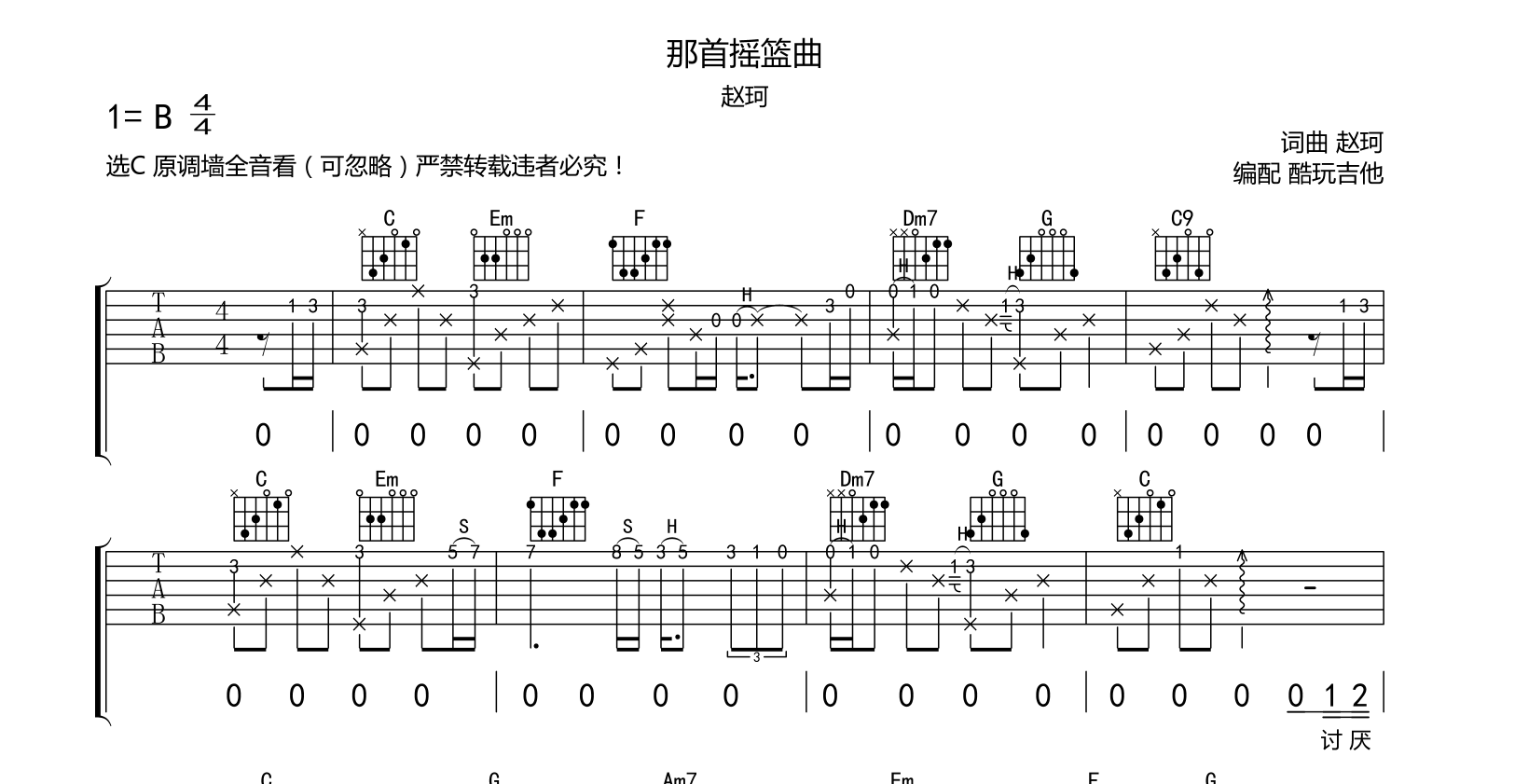 那首摇篮曲吉他谱-赵珂-全网首发-原版效果选C降全音可忽略音频为手机录制只是录制了前奏部分附带带前奏间奏尾奏...