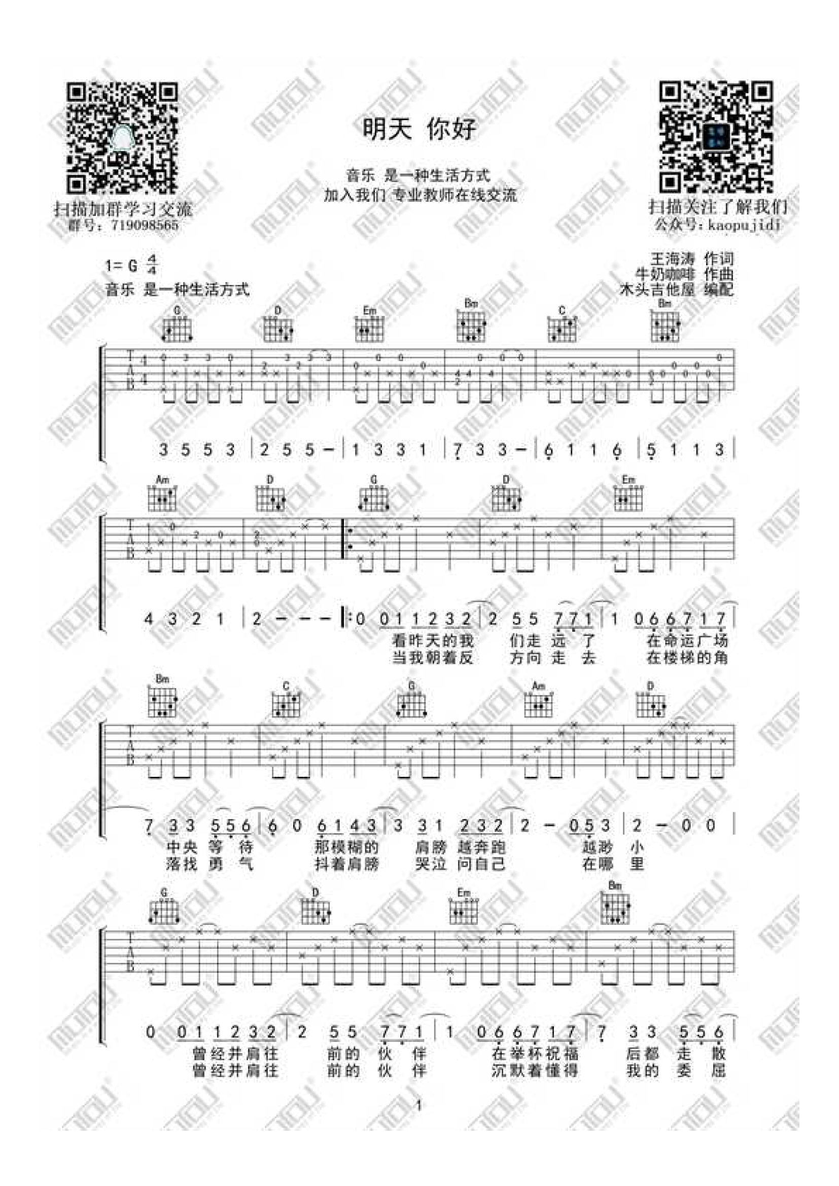 吉他牛奶咖啡 明天你好吉他谱