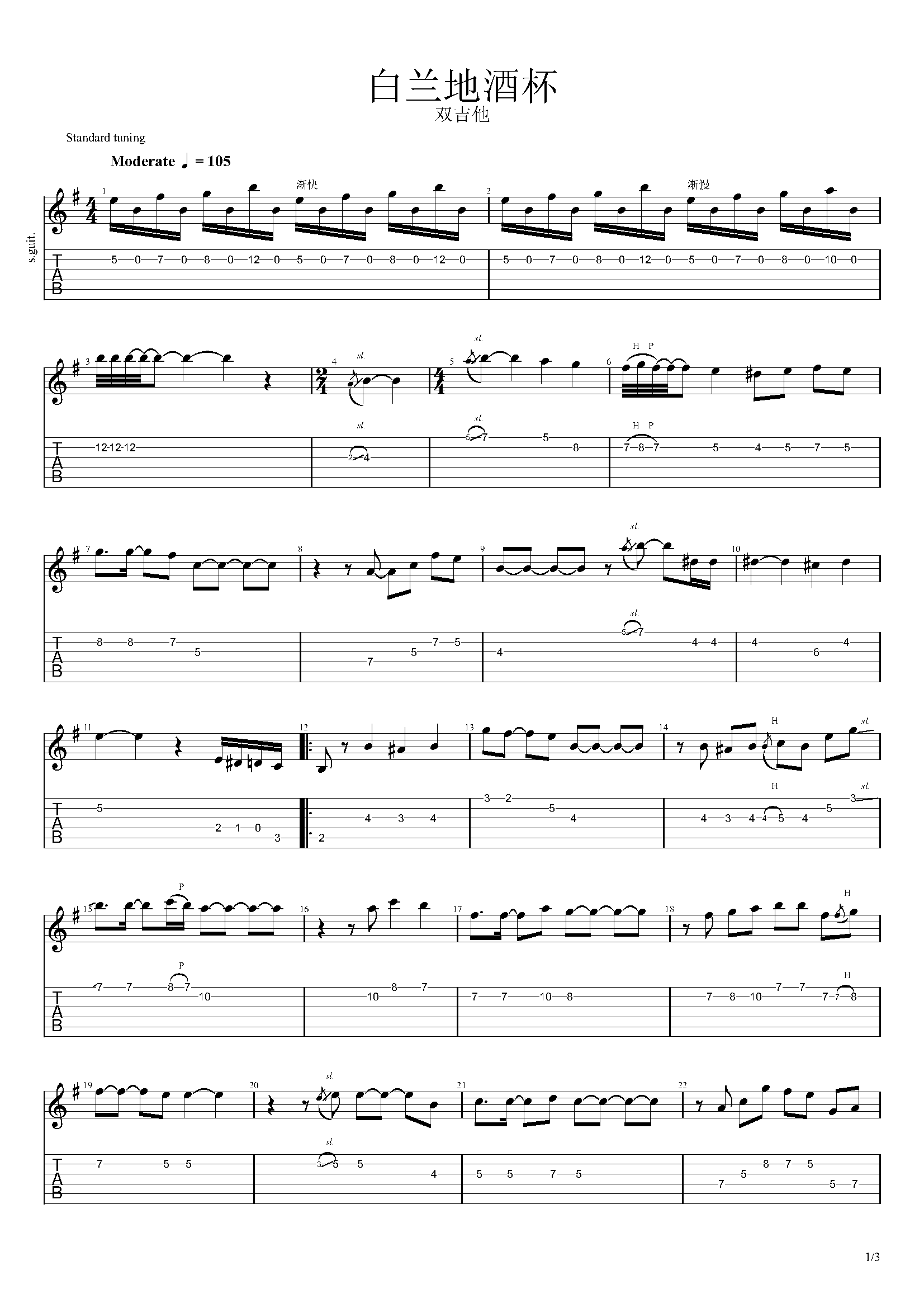 吉他白兰地酒杯吉他谱-独奏谱-名人名曲