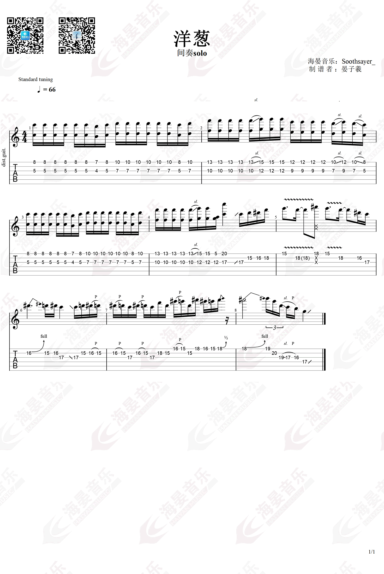 本图片谱为超级原版间奏solo,感谢海晏音乐编配出品...