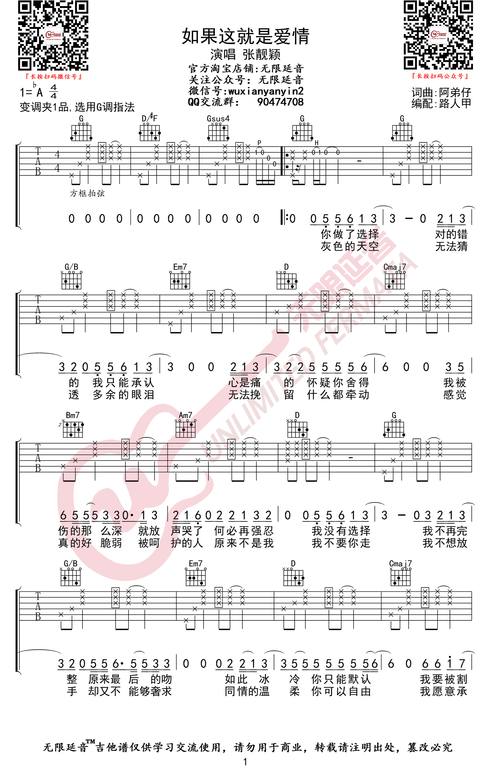 降A原调,变调夹夹一品,选用G调指法。如果这就是爱情六线谱,无限延音编配出品。...