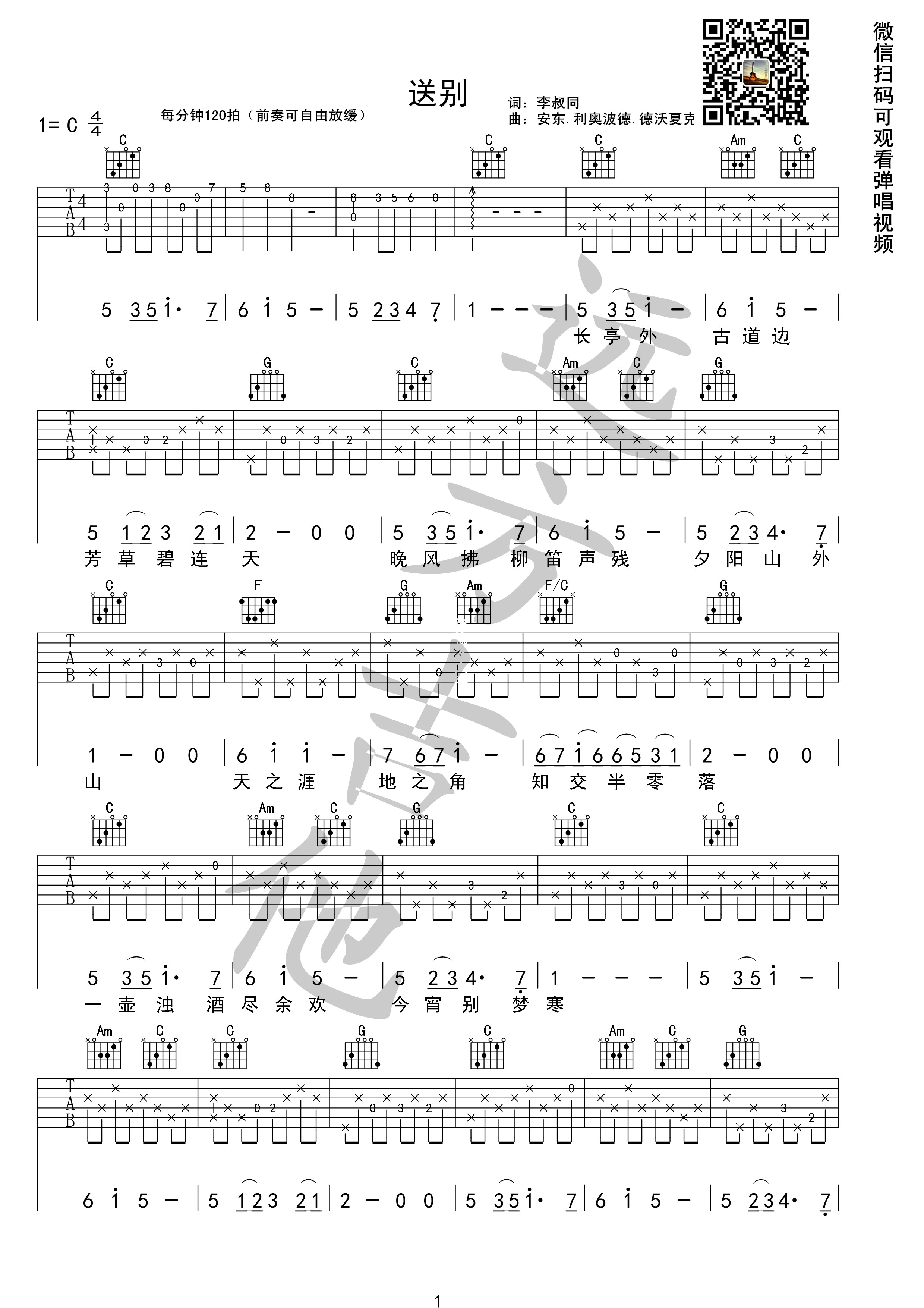 吉他朴树版《送别》吉他谱