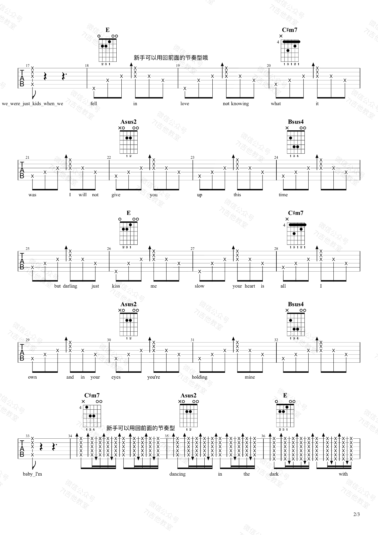 原调是Ab大调,Perfect六线谱,三张图片谱,7T吉他教室编配...