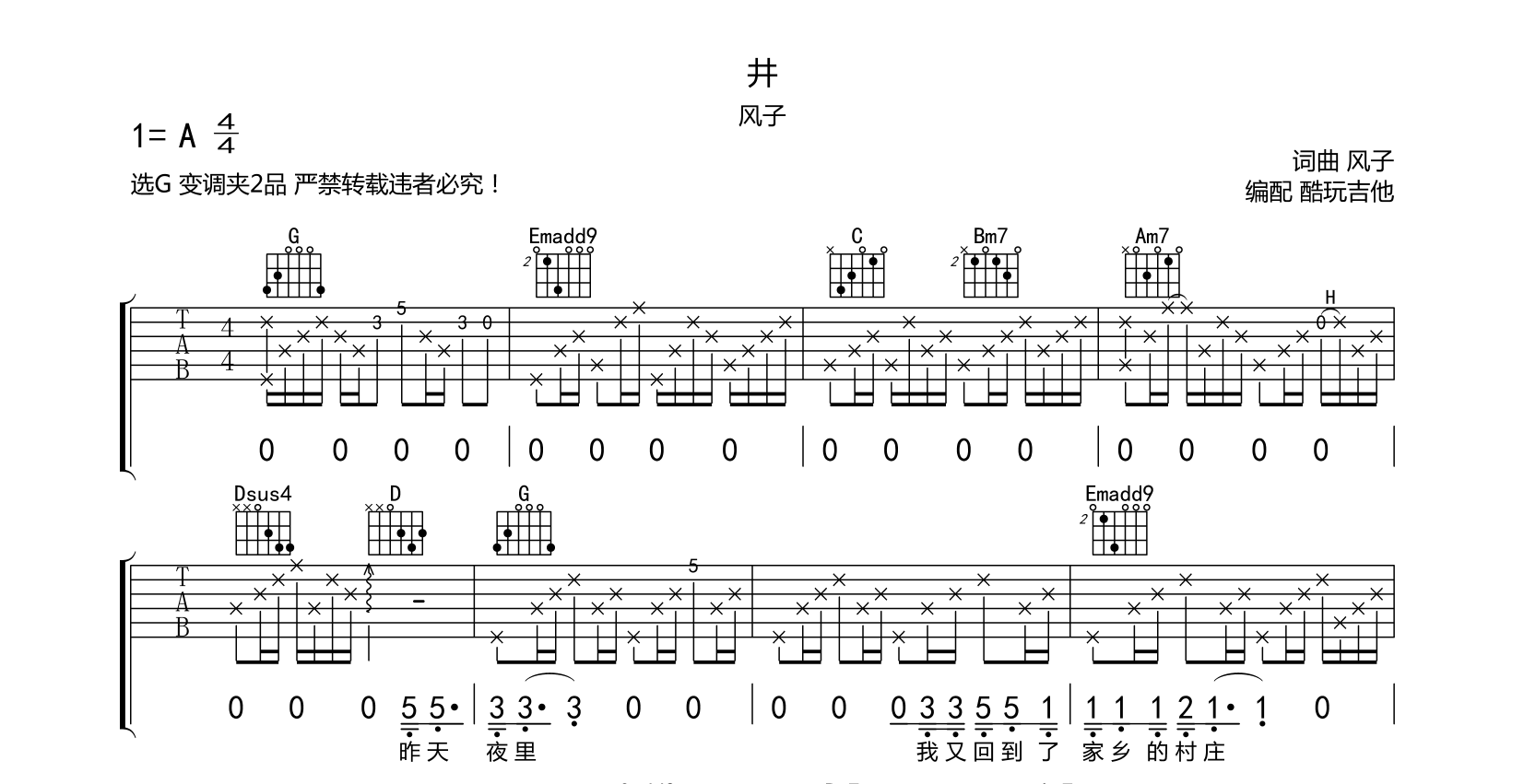 吉他井吉他谱-风子-弹唱谱-琴友定制