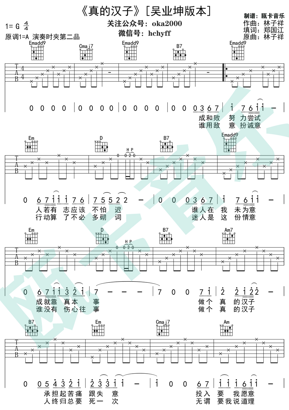 真的汉子吉他谱,林子祥的一首经典粤语歌曲,充满励志热血的正能量老歌。真的汉子吉他弹唱谱,根据吴业坤版本编配,唱出了不同于林子祥的清新溫柔。...