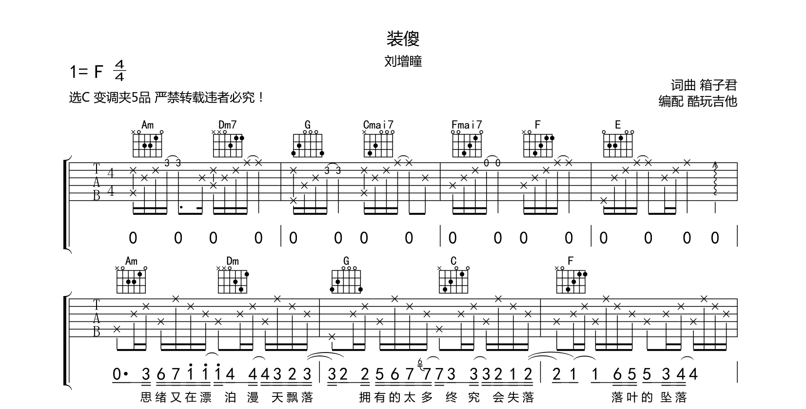 吉他装傻吉他谱-刘增瞳-弹唱谱-琴友定制