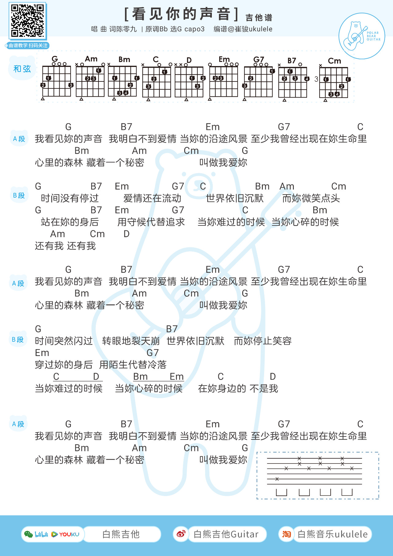 陈零九《看见你的声音》吉他谱G调和弦谱...