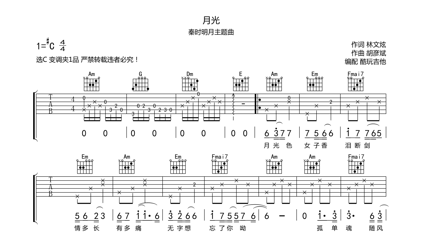吉他月光吉他谱-胡彦斌吉他弹唱谱琴友定制