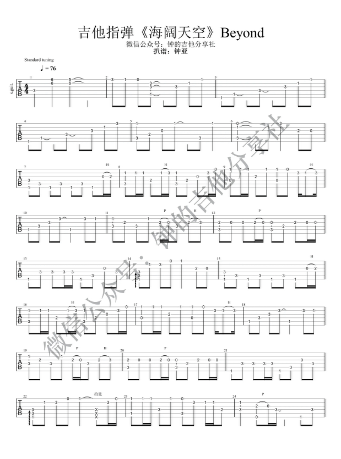 吉他Beyond《海阔天空》吉他谱_吉他弹唱谱_钟亚编配