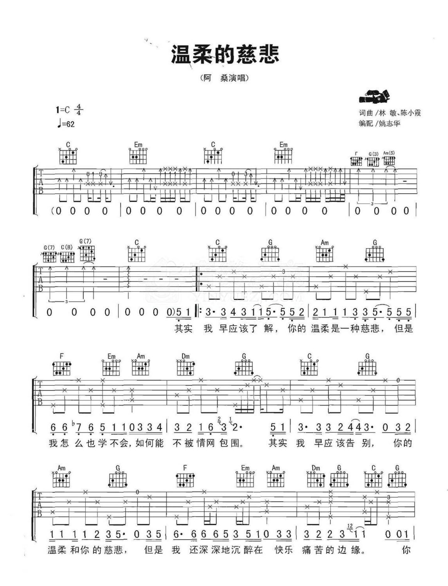 吉他阿桑《温柔的慈悲》吉他谱_吉他弹唱谱_YYZJ编配