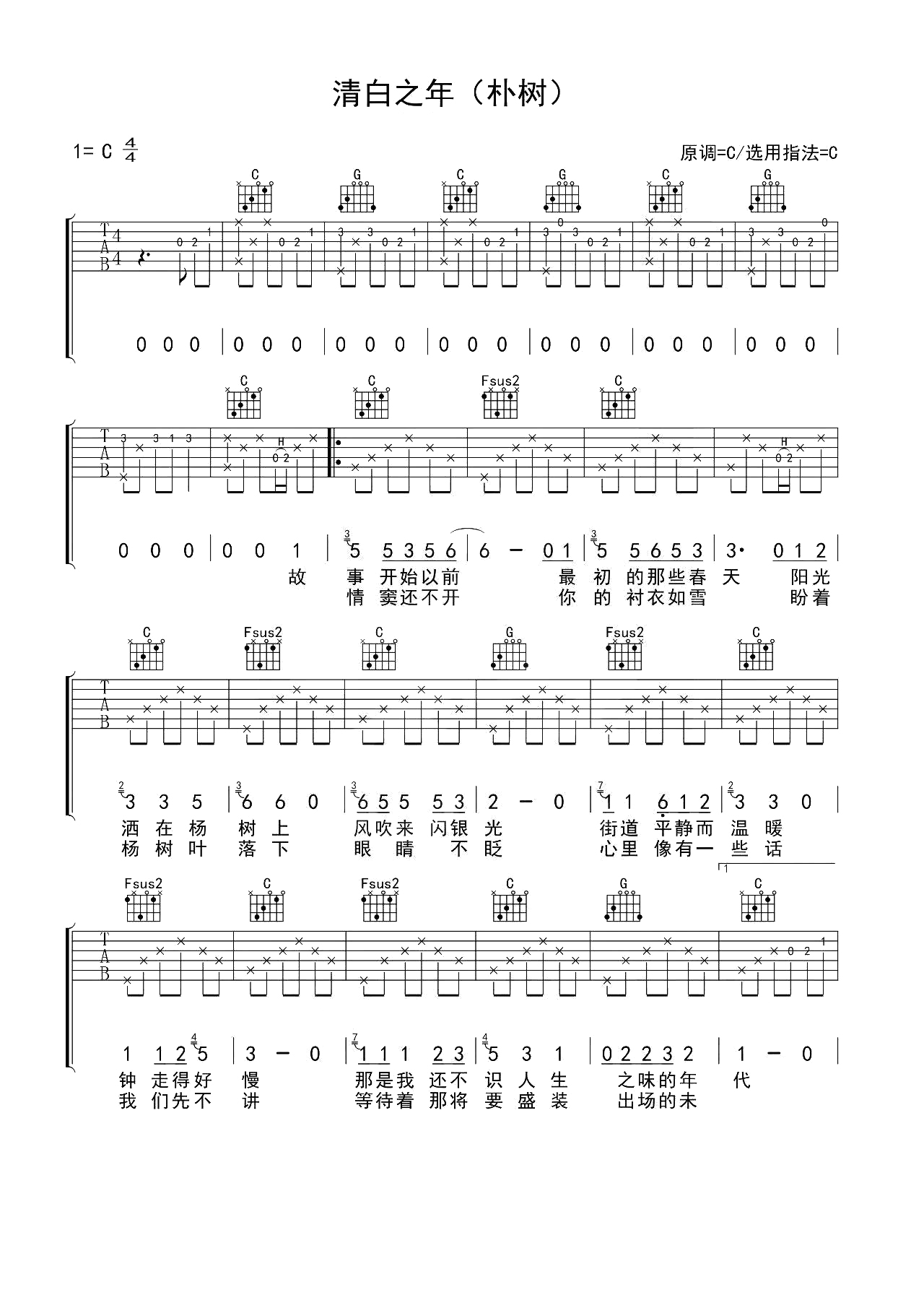 朴树《清白之年》吉他谱_C调吉他弹唱谱...