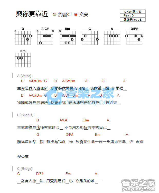 吉他约书亚《与你更靠近》吉他谱_吉他弹唱谱_YYZJ编配
