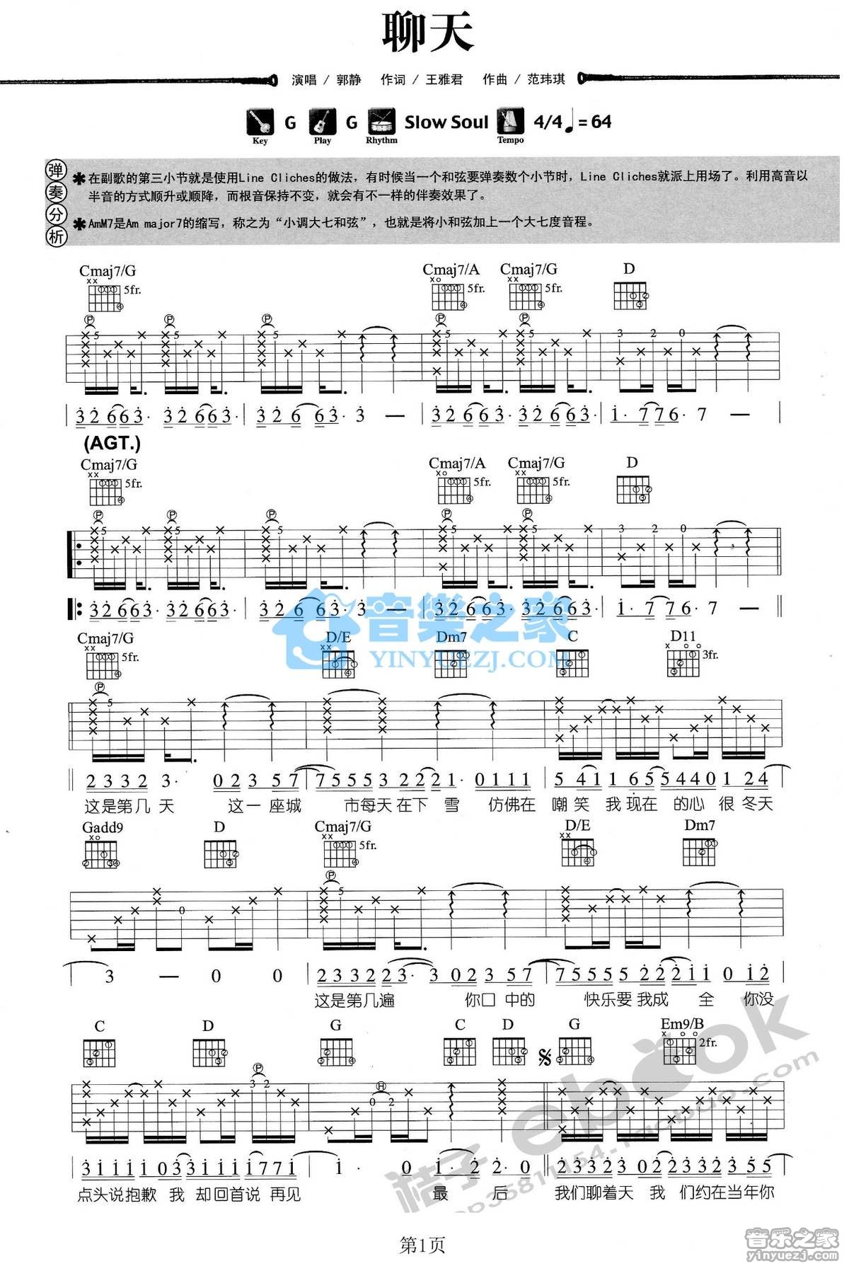 吉他郭静《聊天》吉他谱_吉他弹唱谱
