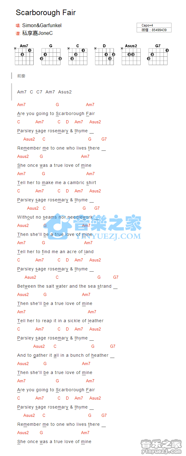 吉他Simon《Scarborough Fire》吉他谱_吉他弹唱谱_YYZJ编配