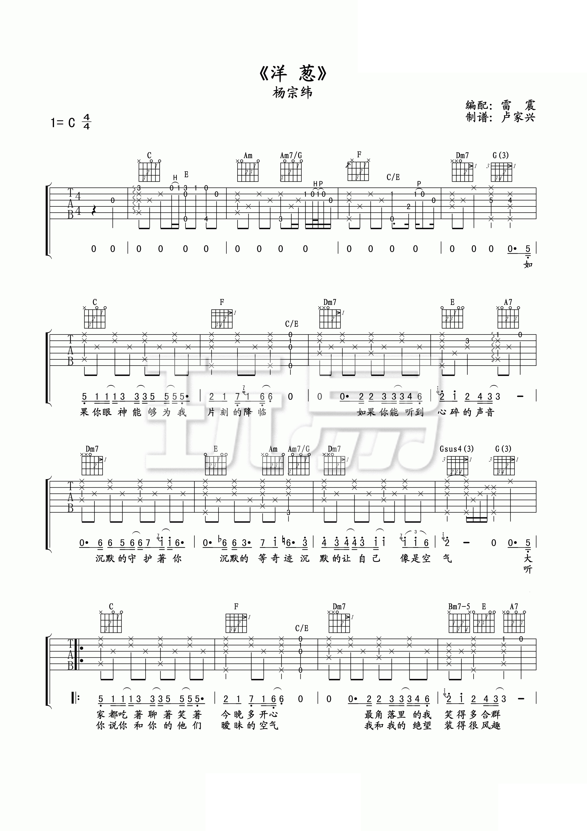 吉他杨宗纬《洋葱》吉他谱_吉他弹唱谱_玩易吉他--卢家兴编配