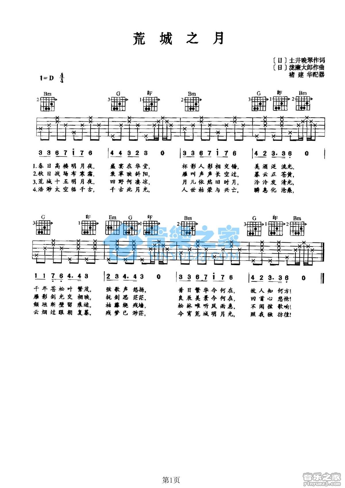 吉他日本民歌《荒城之月》吉他谱_吉他弹唱谱