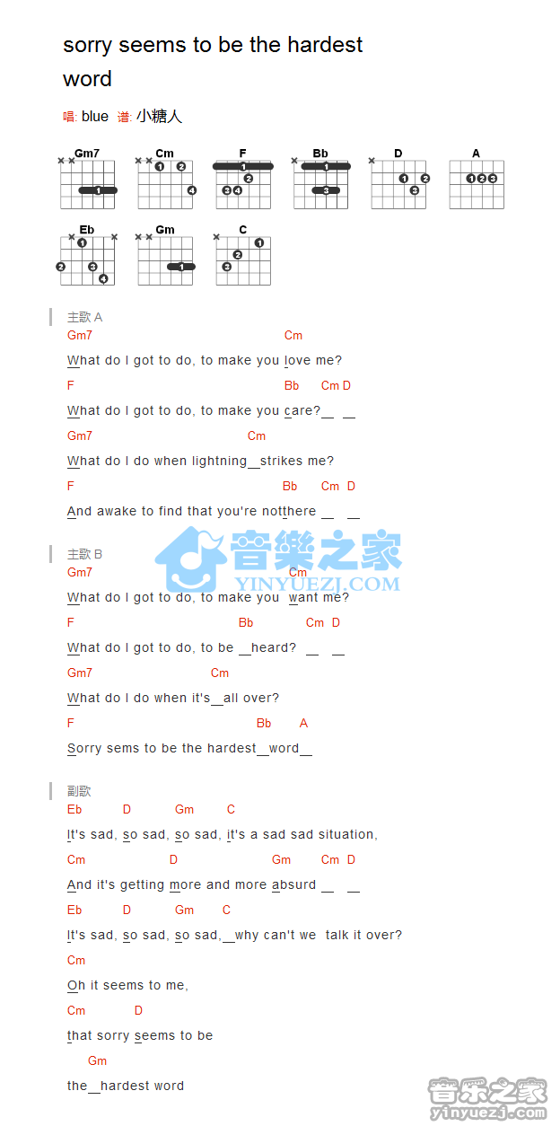 吉他Blue《sorry seems to be the hardest word》吉他谱_吉他弹唱谱_YYZJ编配