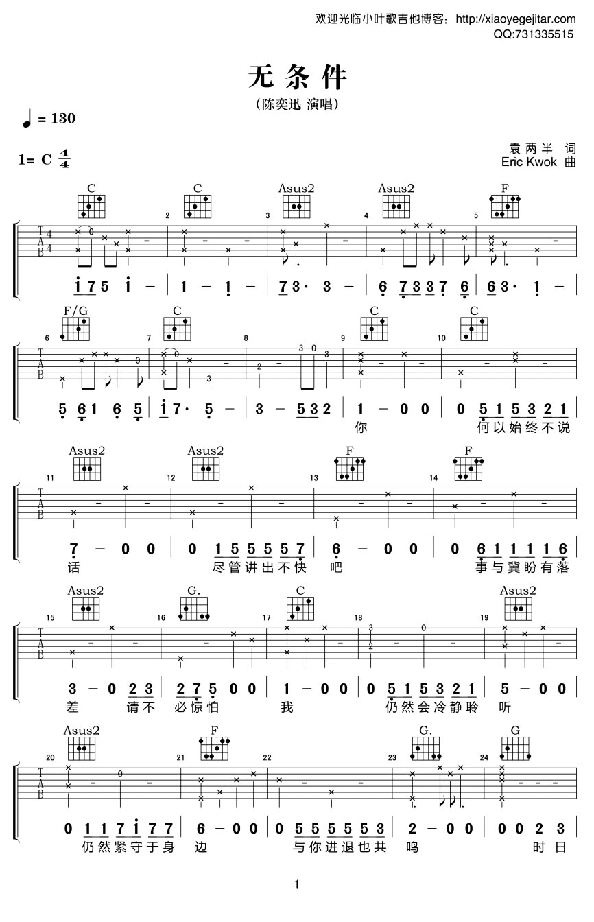 吉他陈奕迅《无条件》吉他谱_吉他弹唱谱