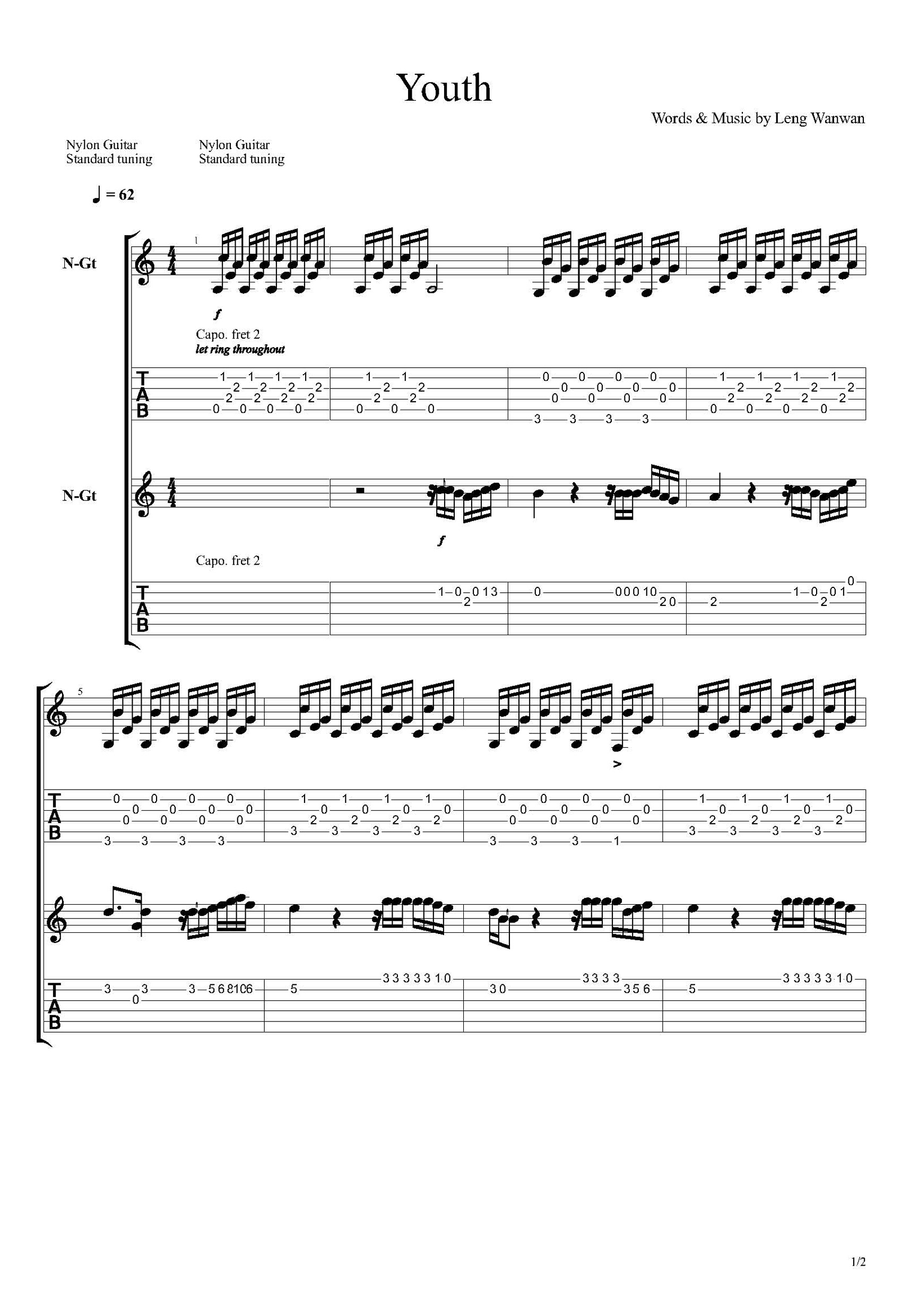 冷碗碗《youth》吉他谱_吉他独奏谱...