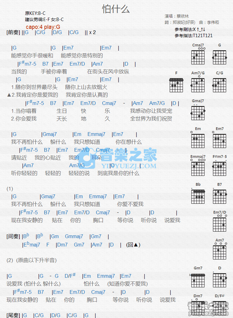 G调版蔡依林《怕什么》吉他和弦弹唱谱...