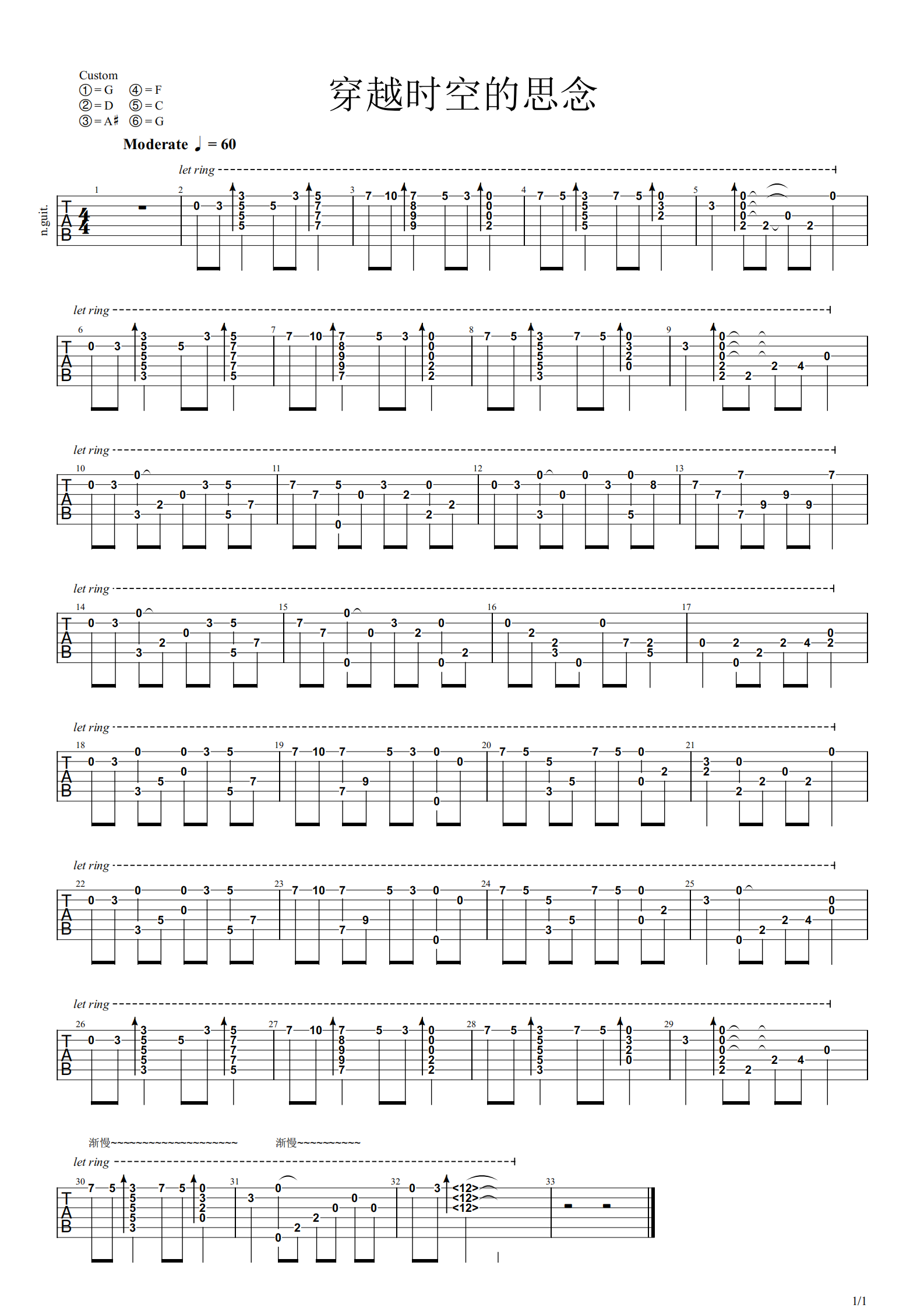 犬夜叉《穿越时空的思念》吉他谱_吉他独奏谱...