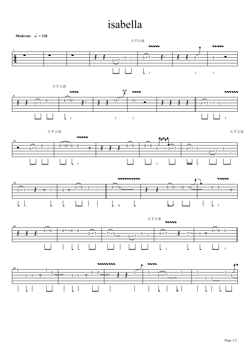 吉他《isabella》吉他谱_吉他弹唱谱