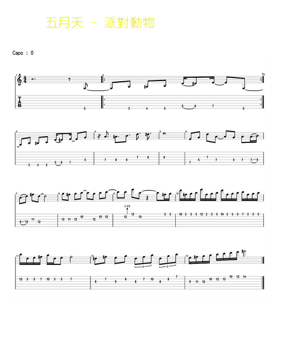 吉他五月天《派对动物》吉他谱_吉他弹唱谱_马叔叔编配