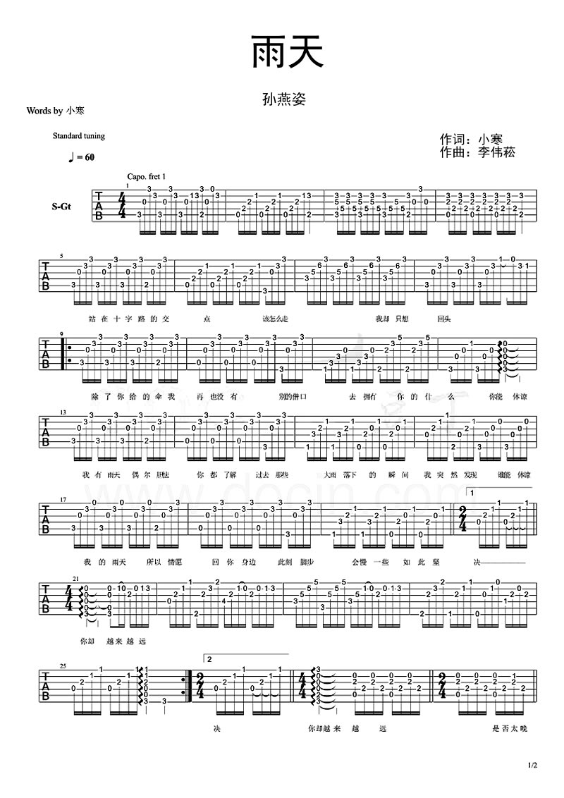 吉他孙燕姿《雨天》吉他谱_吉他弹唱谱
