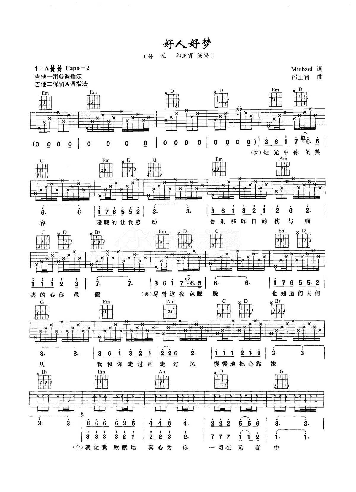 吉他孙悦/邰正宵《好人好梦》吉他谱_吉他弹唱谱