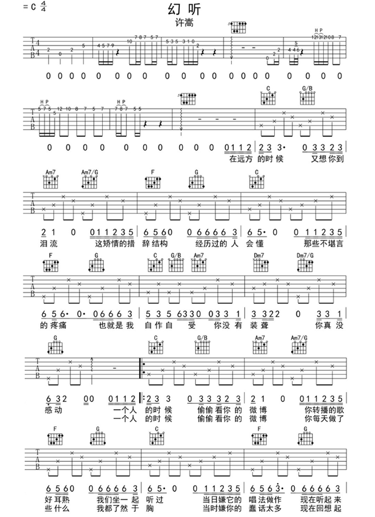 许嵩《幻听》吉他谱_C调吉他弹唱谱...
