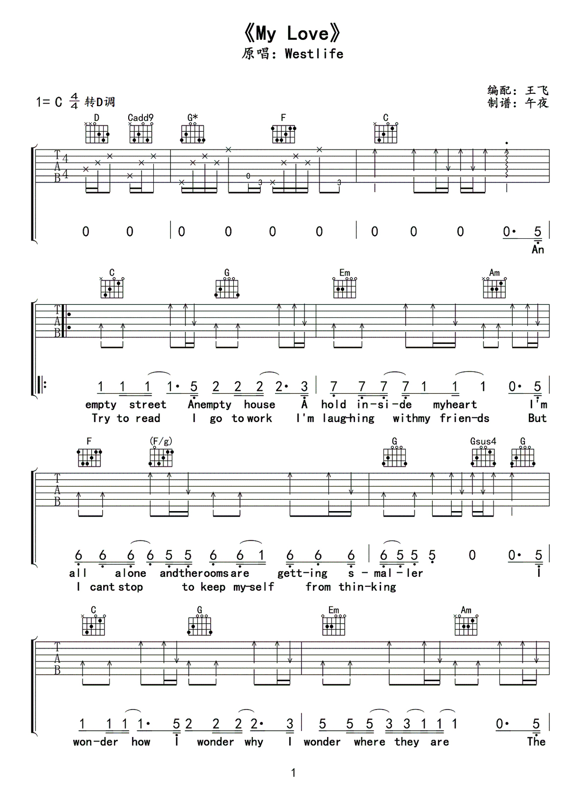 吉他西城男孩《MY LOVE》吉他谱_吉他弹唱谱_王飞/午夜编配