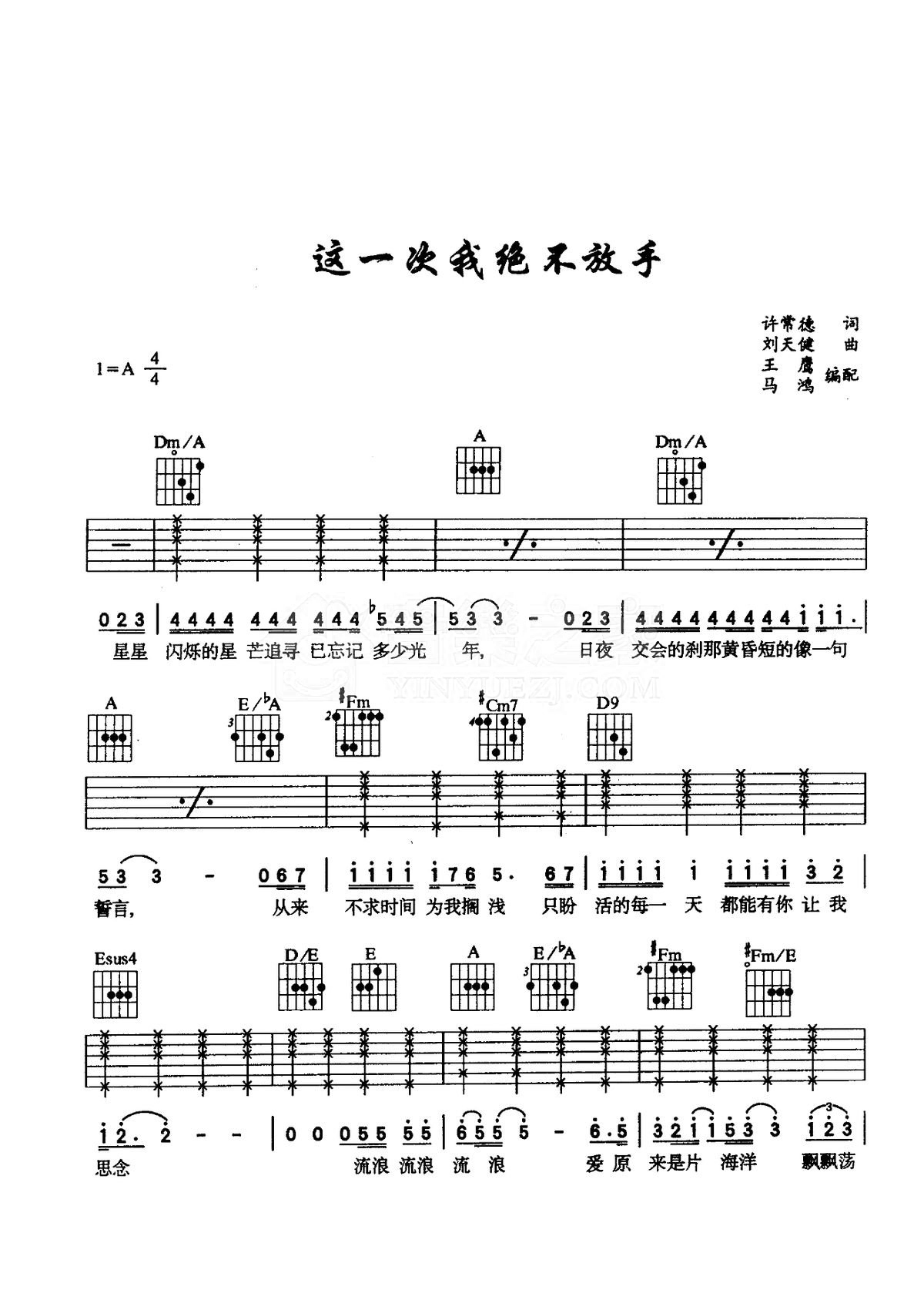 A调版齐秦《这一次我绝不放手》吉他弹唱六线谱...