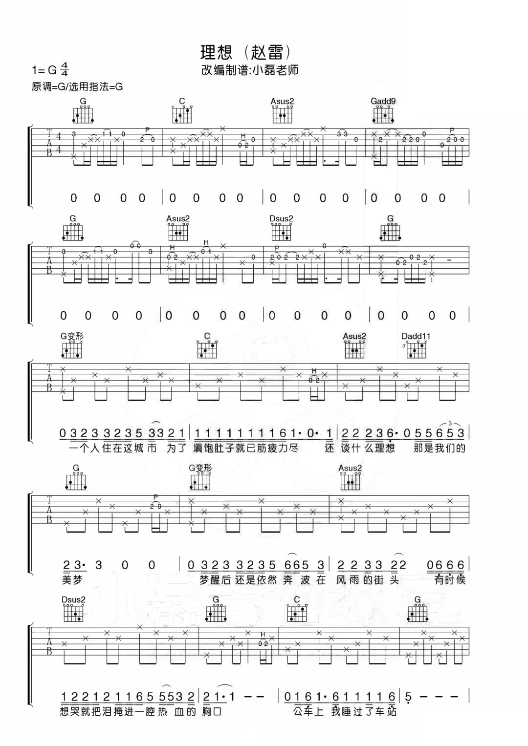 赵雷《理想》吉他谱_G调吉他弹唱谱...