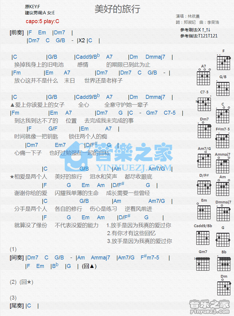 吉他林依晨《美好的旅行》吉他谱_吉他弹唱谱