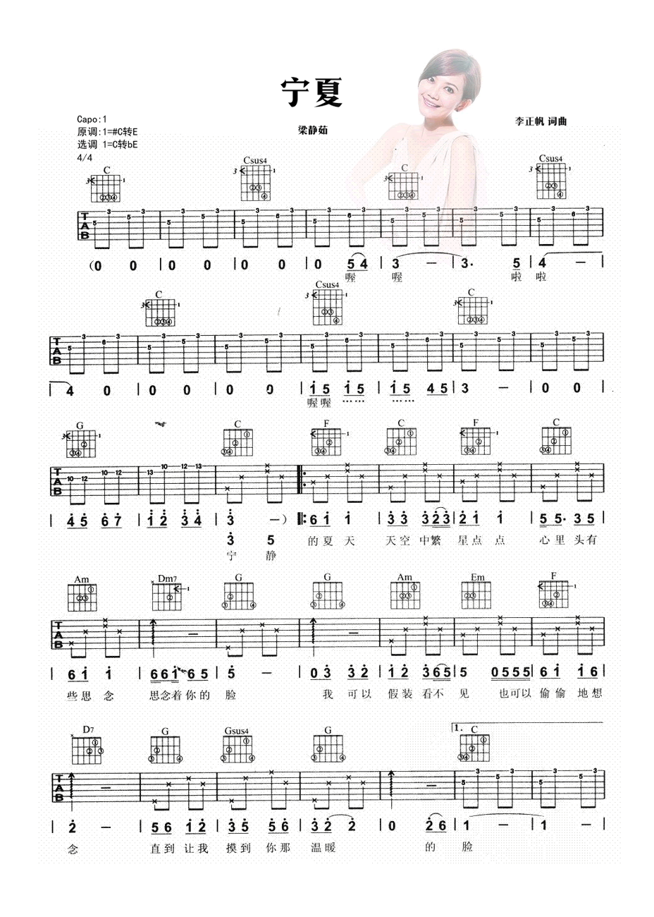 吉他梁静茹《宁夏》吉他谱_吉他弹唱谱