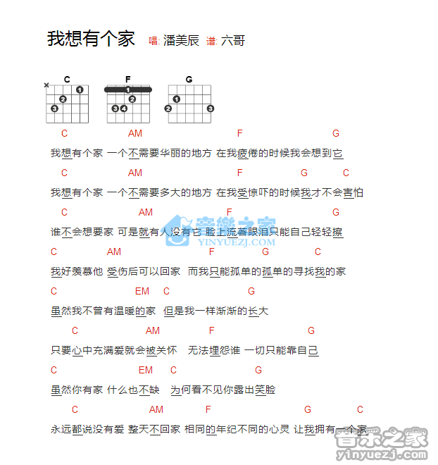 潘美辰《我想有个家》吉他和弦弹唱谱...