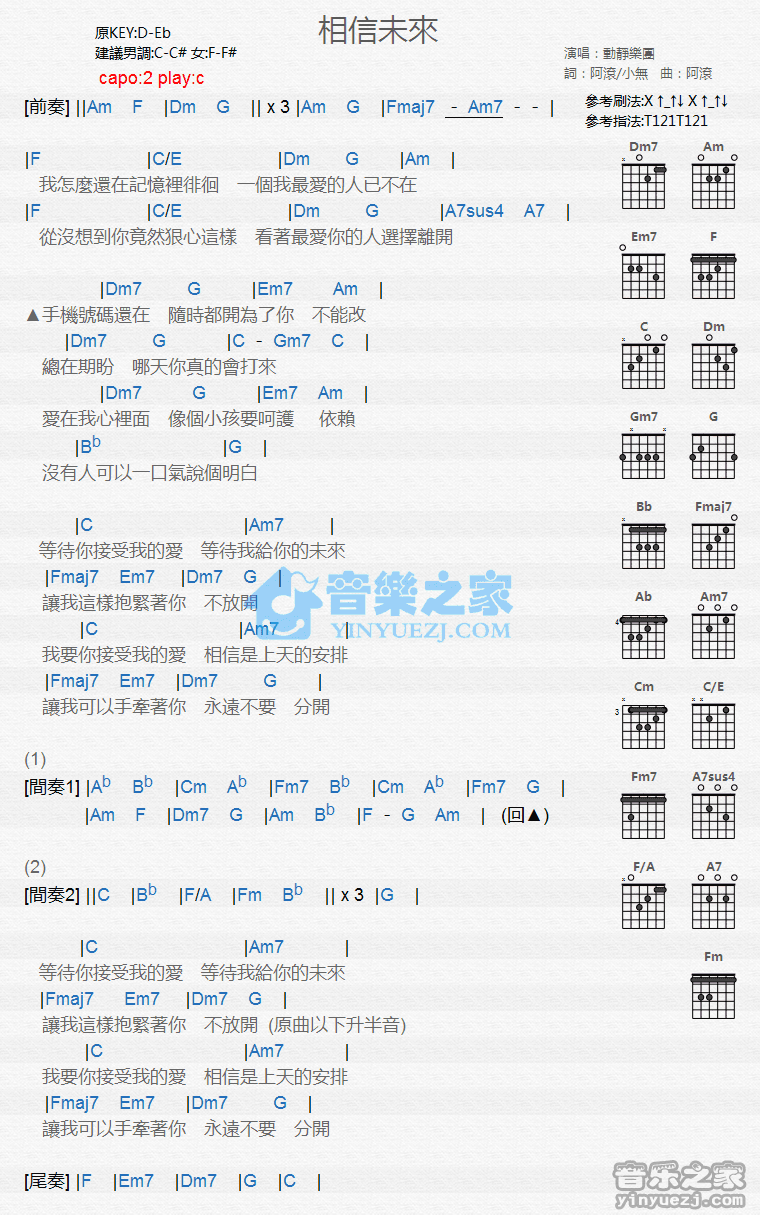 吉他动静乐团《相信未来》吉他谱_吉他弹唱谱_YYZJ编配