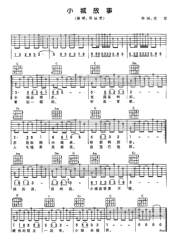 吉他邓丽君《小城故事》吉他谱_吉他弹唱谱