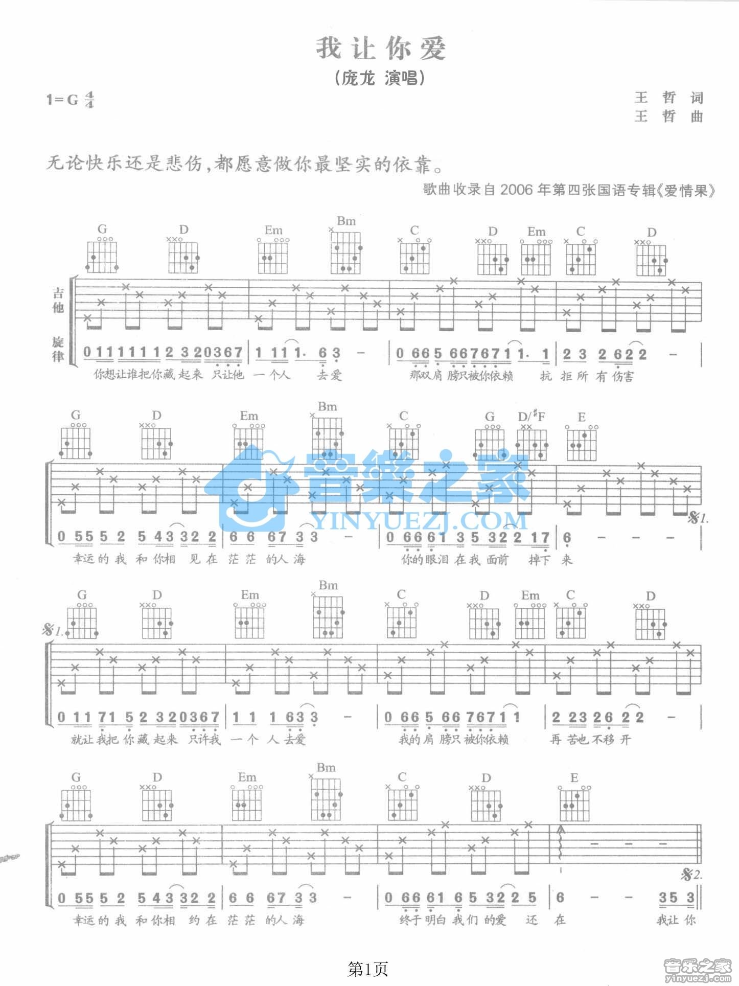 吉他庞龙《我让你爱》吉他谱_吉他弹唱谱