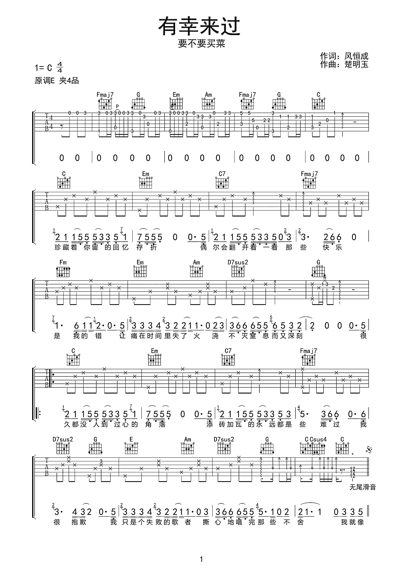 要不要买菜《有幸来过》吉他谱_C调吉他弹唱谱...