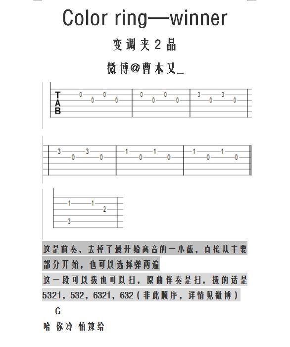 吉他WINNER《color ring》吉他谱_吉他弹唱谱