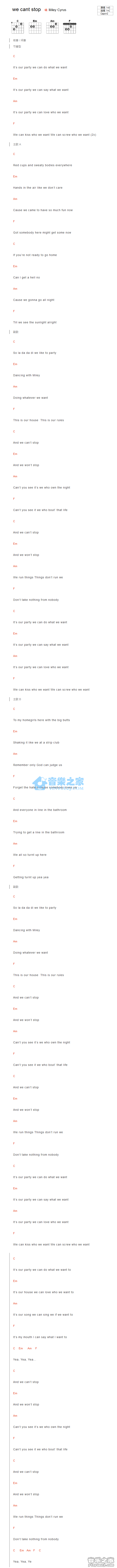 C调版MileyCyrus《wecantstop》吉他和弦弹唱谱...