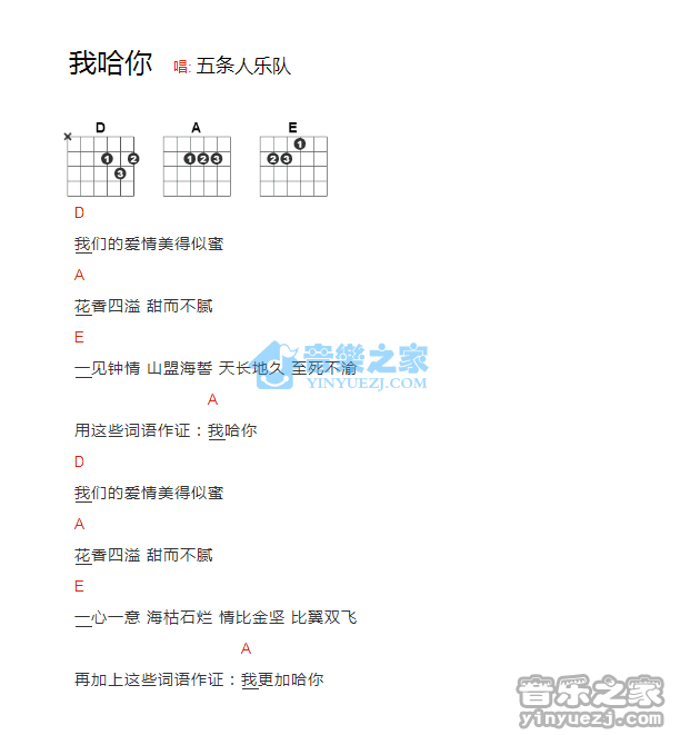 五条人《我哈你》吉他和弦弹唱谱...