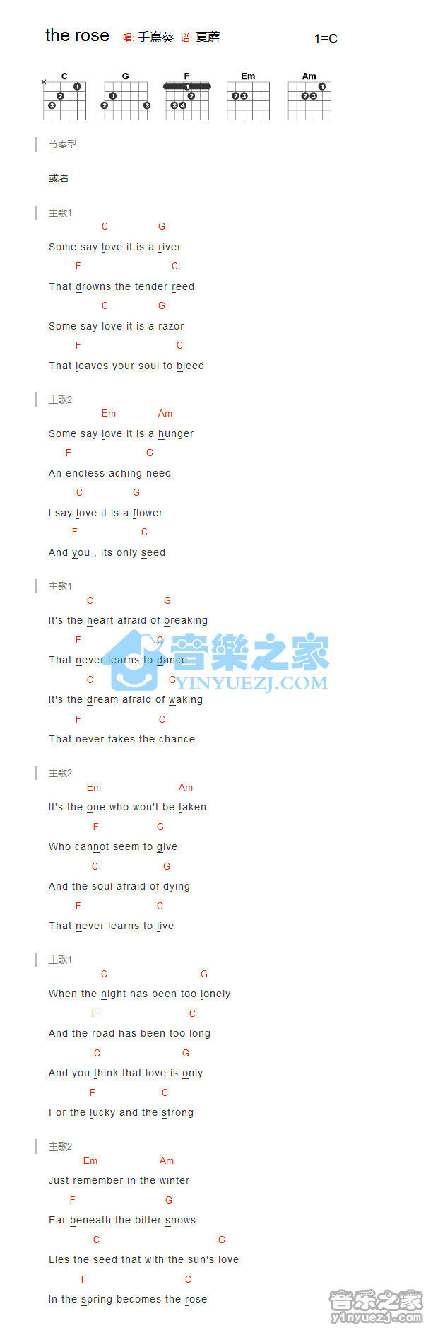 吉他手炜《The Rose》吉他谱_吉他弹唱谱_YYZJ编配