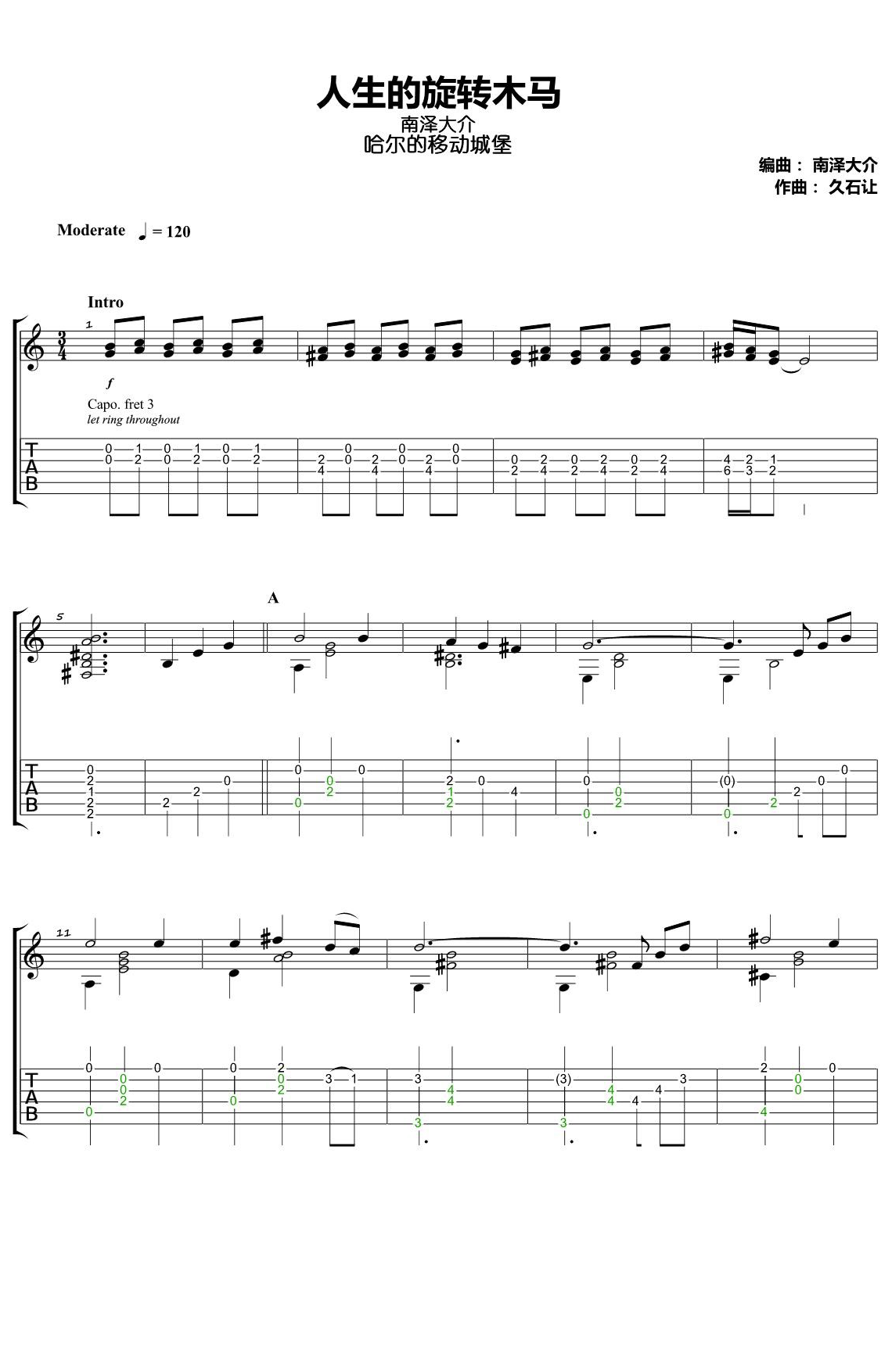 吉他南泽大介《人生的旋转木马》吉他谱_吉他弹唱谱