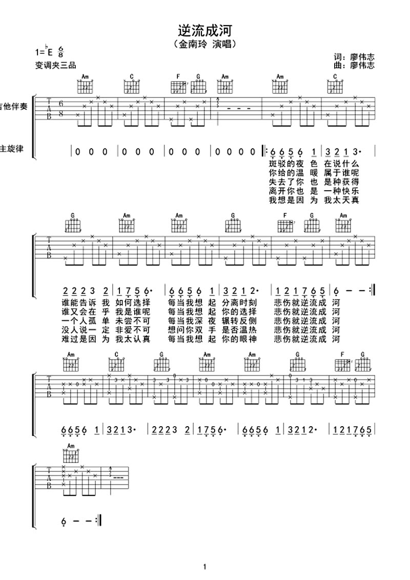 吉他金南玲《逆流成河》吉他谱_吉他弹唱谱