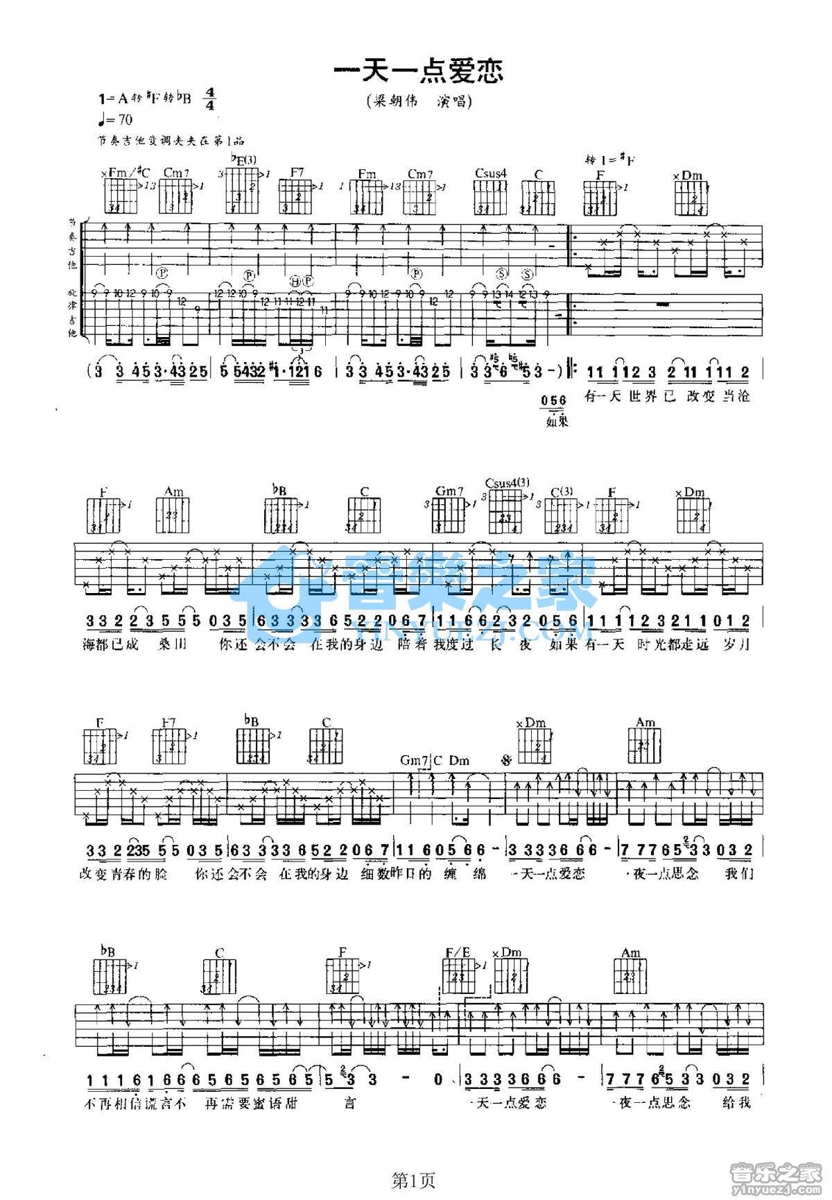 吉他梁朝伟《一天一点爱恋》吉他谱_吉他弹唱谱_YYZJ编配