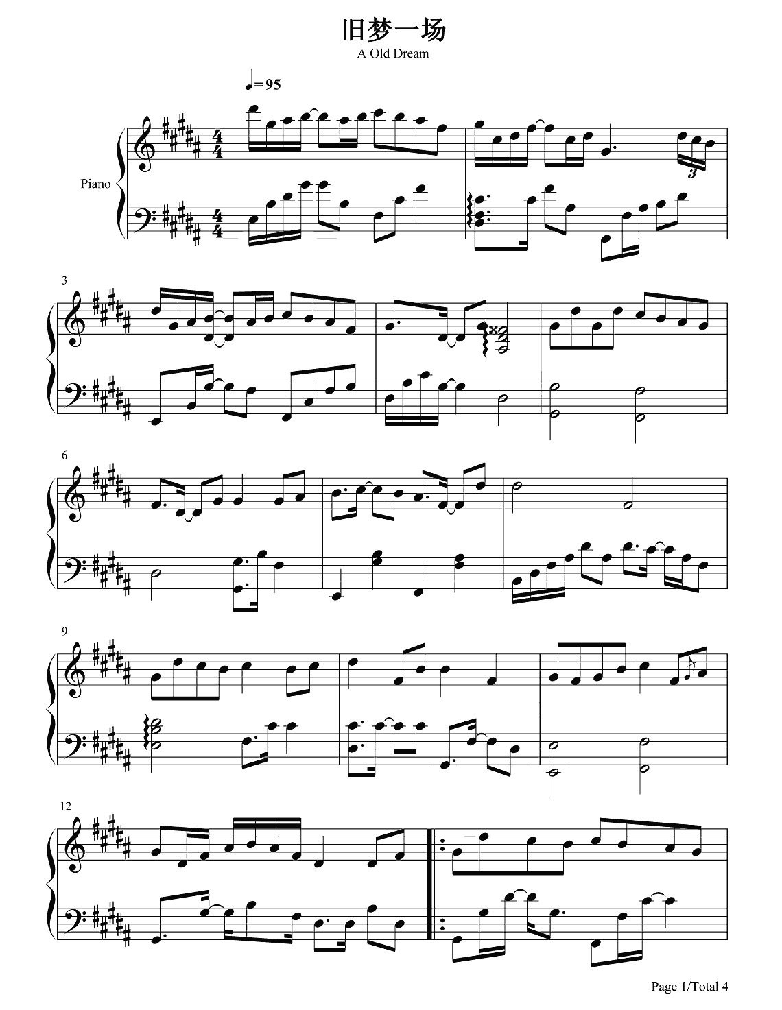 钢琴阿悠悠《旧梦一场》钢琴谱