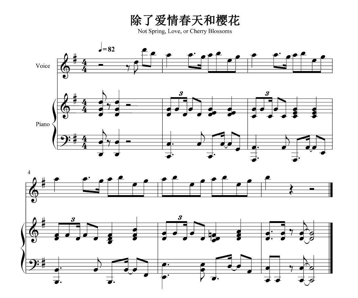 钢琴柯西瓜《除了爱情春天和樱花》钢琴谱